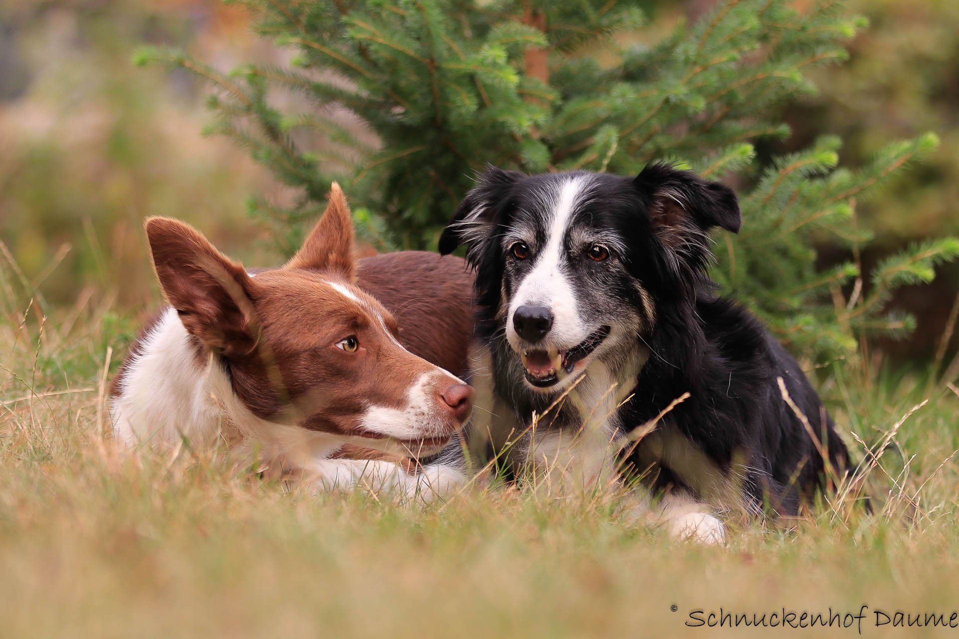 Eine unersetzliche Arbeitshilfe stellen auf unserem Hof die Border Collies dar. Durch ihr ausgeglichenes Wesen und die nahezu perfekte Lenkbarkeit ist das Umtreiben der Schafe eine äußerst tierschonende Angelegenheit.