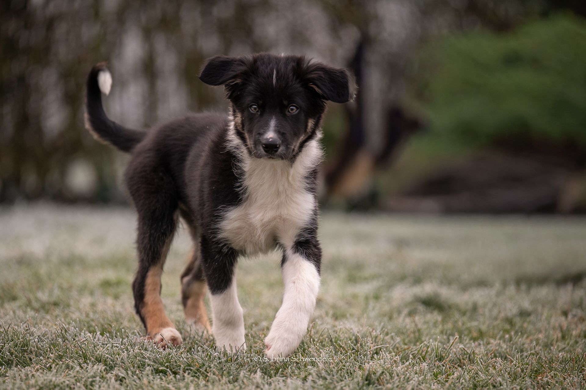 Eine unersetzliche Arbeitshilfe stellen auf unserem Hof die Border Collies dar. Durch ihr ausgeglichenes Wesen und die nahezu perfekte Lenkbarkeit ist das Umtreiben der Schafe eine äußerst tierschonende Angelegenheit.