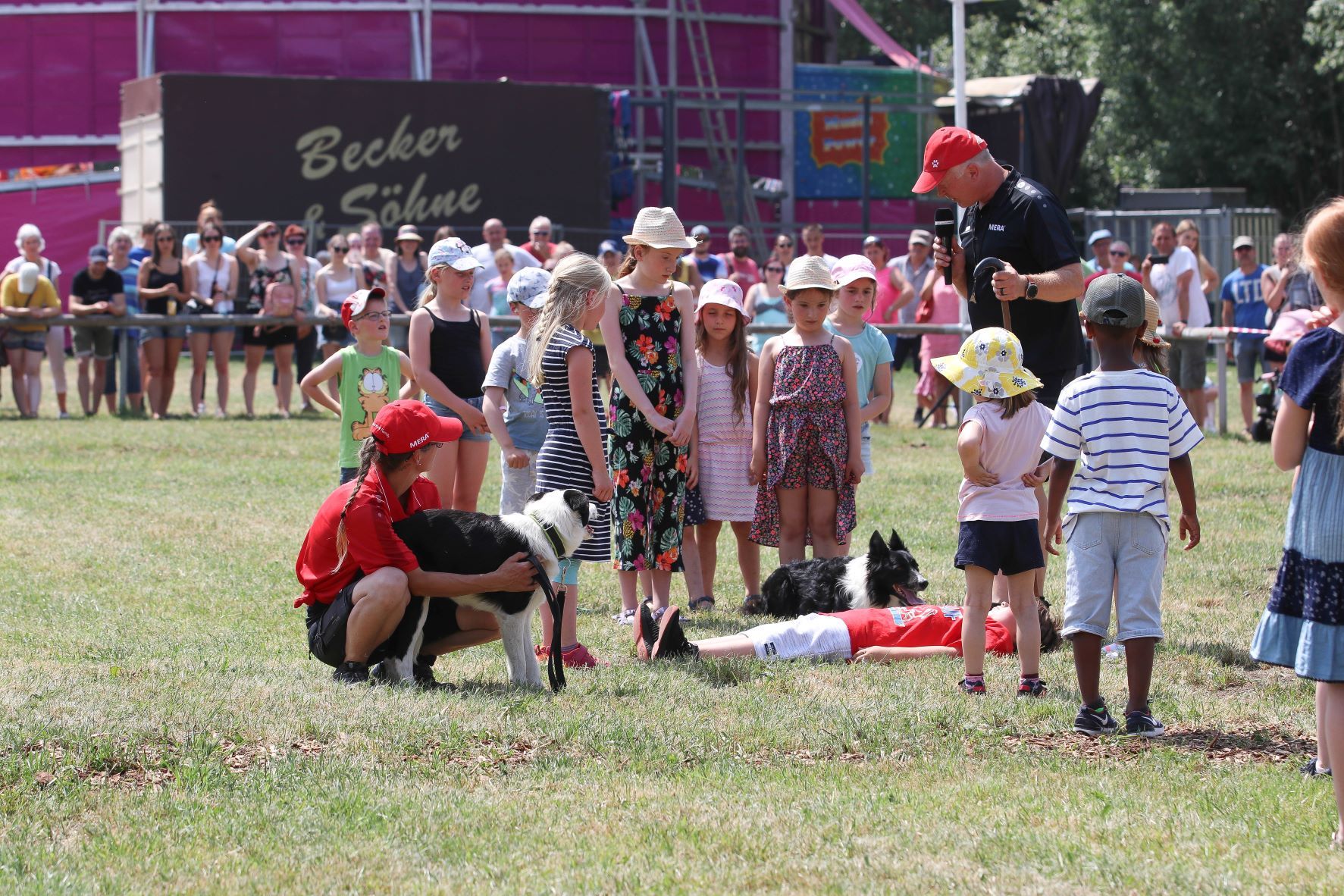Die Schafe wurden dafür immer wieder in einen mit dem MERA Pavillon überdachten Pferch untergebracht, um sie bei den Temperaturen nicht zu überlasten. Letztlich liegt uns, auf dem Schnuckenhof, der Tierschutz ganz besonders am Herzen. Die Hunde, insgesamt waren sieben (Black, Gorbi von Sven, Rose, Mick, Sweep, Nell & Joe) im Einsatz, wurden jeweils nur kurz eingesetzt, und zusätzlich stand allen Tieren ausreichend Wasser zur Verfügung.